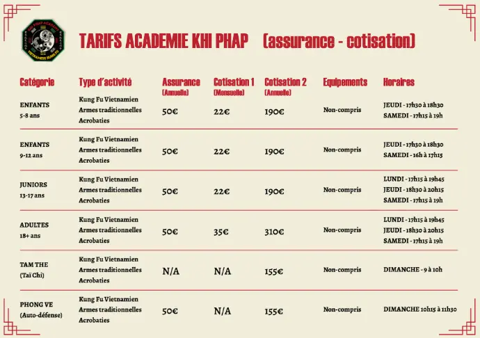 Tarifs d'adhésion